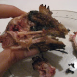 Meanwhile some others and I prepare the marinade and fixings for the feast. The whole ordeal took about 3 hours! And yes, this is the chicken head: brains, eyeballs and tongue. But, dear friends in the Philippines and Charity Baptist, I think that balute was more difficult to stomach even after seeing the whole process!